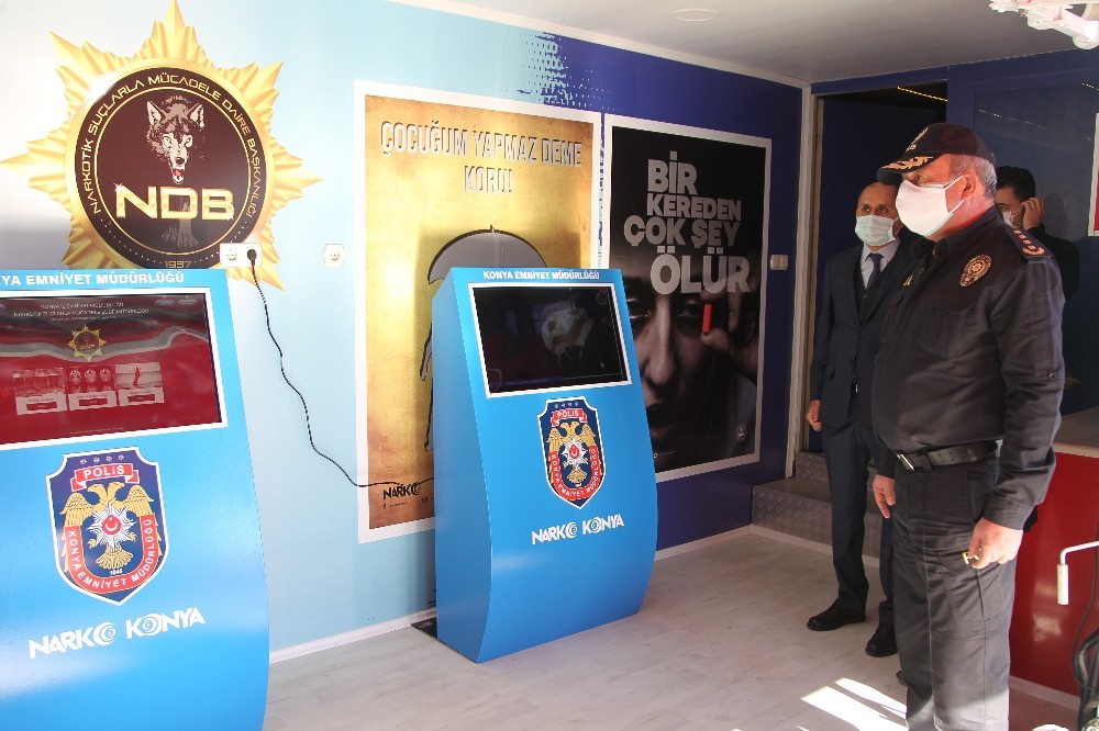 Konya İl Emniyet Müdürü Mustafa Aydın, törende yaptığı konuşmada, İçişleri Bakanı Süleyman Soylu tarafından başlatılan ‘En iyi narkotik polisi anne’ projesi kapsamında hazırlanan eğitim tırı ile uyuşturucu ile mücadelede mesafe kat edeceklerini söyledi. Emniyete kazandırılan eğitim tırı ile vatandaşların yerinde bilgilendirme ile polise olan desteğini artırmak istediklerini belirterek, “Narkoterör olarak ifade ettiğimiz uyuşturucu madde bağımlılığının nitelikleri ve etkilerinin anlatıldığı Narkotik Eğitim Tırı ile amacımızın sizlerin bilgilerini artırmak ve bu konuda alınacak tedbirleri tekrardan göstermektir. Bugün itibariyle faaliyete geçirdiğimiz eğitim tırımız il merkezi ve ilçelerimize ziyaretlerde bulunarak, öğrencileri ve velilerimizi bilgilendirecek. Narkotik Eğitim Tırını teşkilata kazandırmış olmanın gururu ile Narkoterör üzerinde eğitici rol alarak vatandaşlarımızı eğitecek olmanın sevincini yaşamaktayız” dedi.