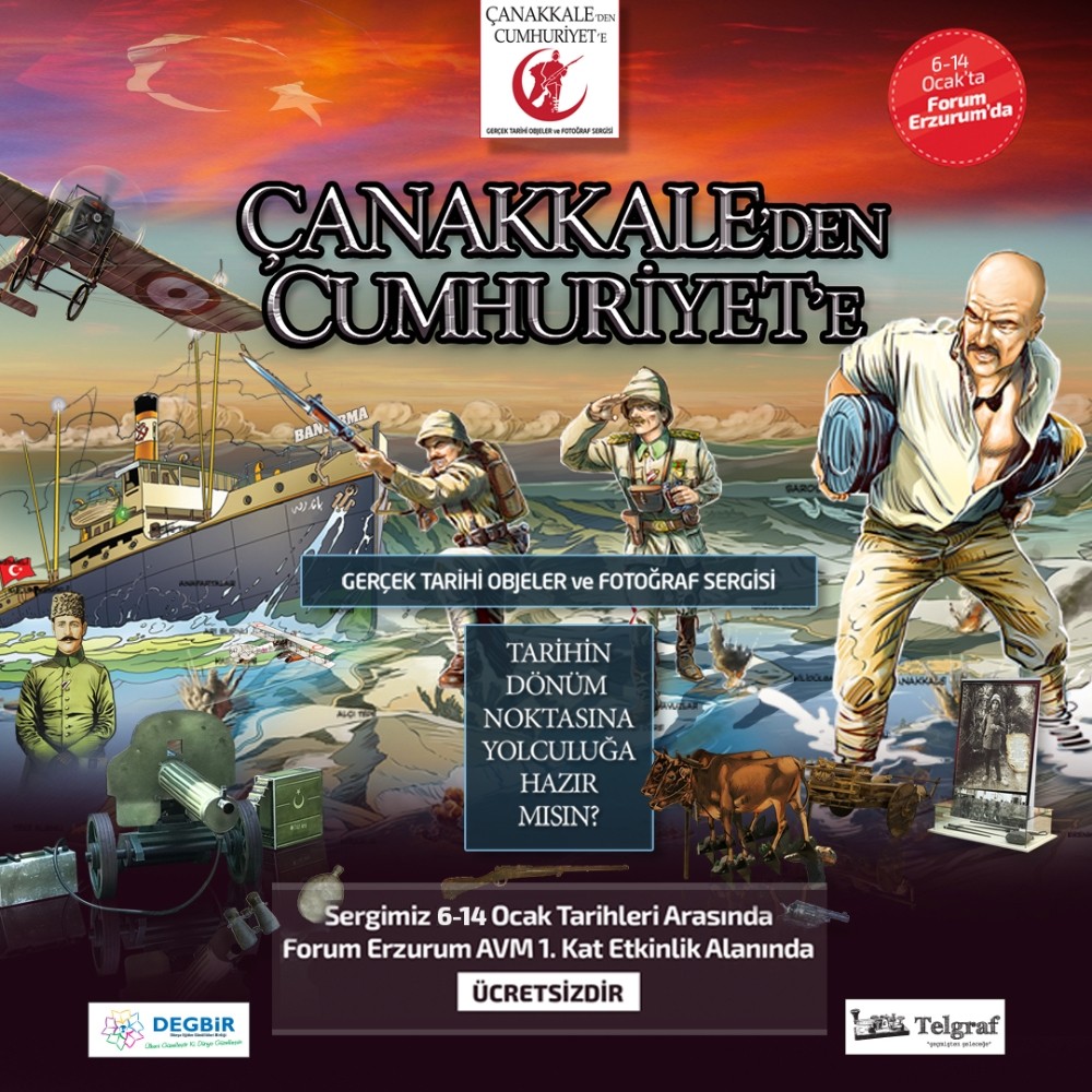 Türkiye’yi dolaşan Çanakkale Müzesi ve Fotoğraf Sergisi, 6-14 Ocak 2021 tarihleri arasında Forum Erzurum’da yerini alacak. Çanakkale ruhunun savaştan kalma malzemeler ve fotoğraflarla sunulan sergide savaş zamanında kullanılan gerçek malzemeler, döneme ait üniformalarla giydirilmiş askerler, Çanakkale’yi yansıtan yapılarla ilgili maketler ve 100 yıl öncesinin fotoğrafları yer alıyor.