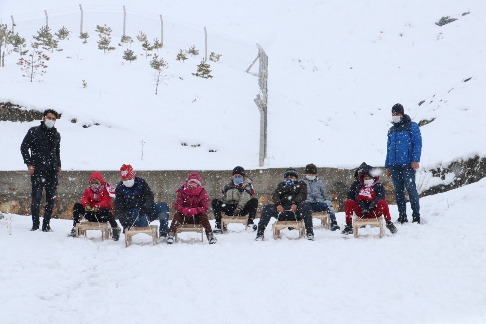 Milli Eğitim Bakanı Ziya Selçuk, okullarda çocukların kayması için yaptırılan ancak şartlar elvermeyince Sevgi Evleri’ne gönderilen kızaklarla kayan çocukların fotoğrafını paylaştı.