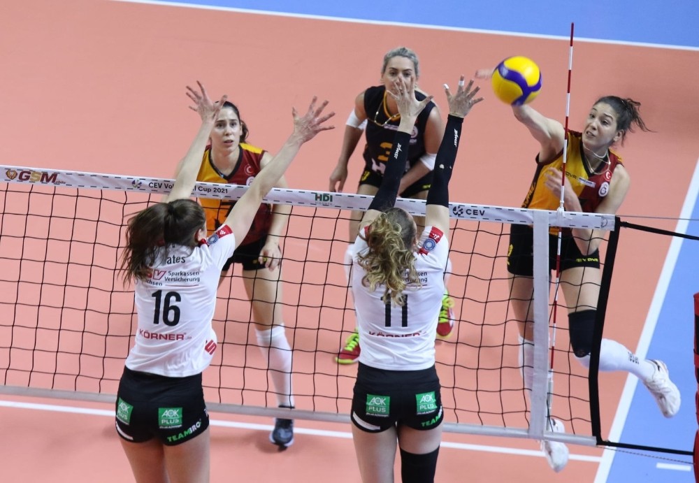 2021 Kadınlar CEV Kupası çeyrek final maçında Galatasaray HDI Sigorta, Almanya’nın Dresdner SC takımını 3-1 mağlup etti.