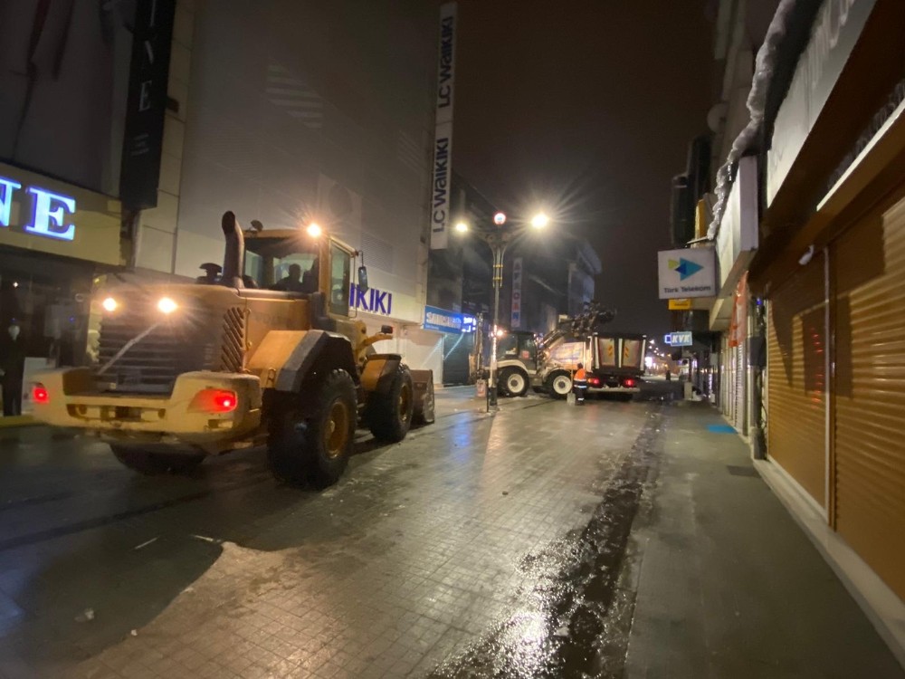 Ağrı Belediyesine bağlı ekipler kar temizleme çalışmalarını aralıksız sürdürüyor.