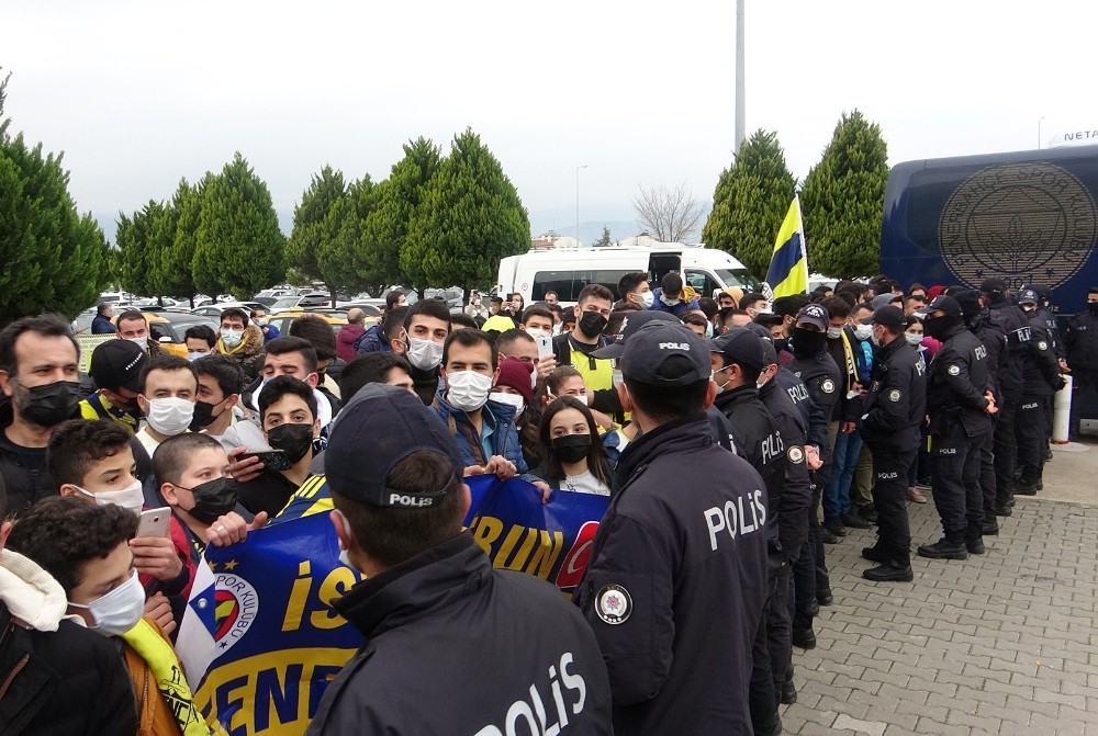 Koronavirüsün unutulduğu karşılama da Fenerbahçe taraftarları sosyal mesafe olmaksızın takımlarını desteklediler.