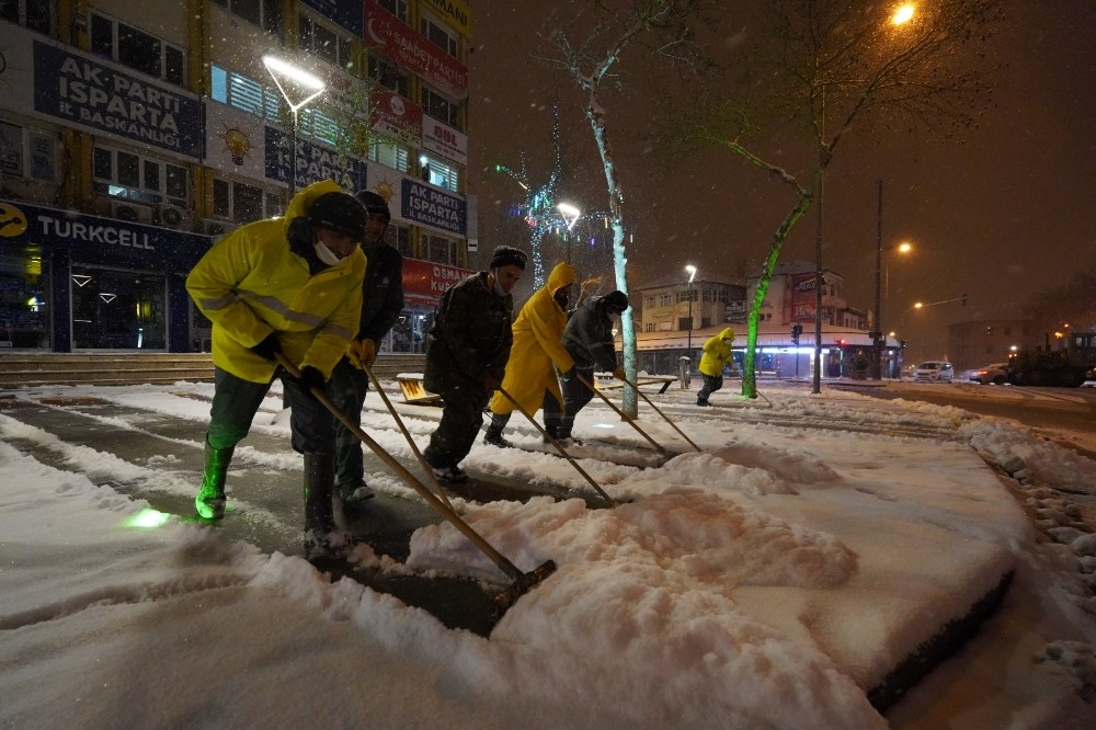 Isparta Belediyesi, kentteki kar yağışı nedeniyle karla mücadele eylem planını devreye alırken, 1200 personel ile 24 saat esasına göre çalışma başlattı.