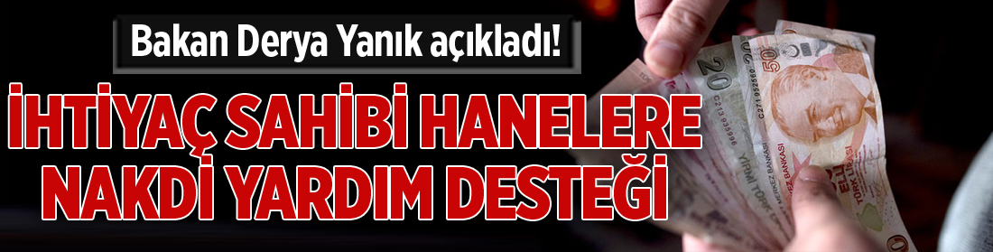 Aile ve Sosyal Hizmetler Bakanı Derya Yanık, 17 Mayıs tarihine kadar sürecek olan tam kapanma dönemi için ihtiyaç sahibi hanelere bin 100 lira tutarında nakdi yardımda bulunacaklarını açıkladı.