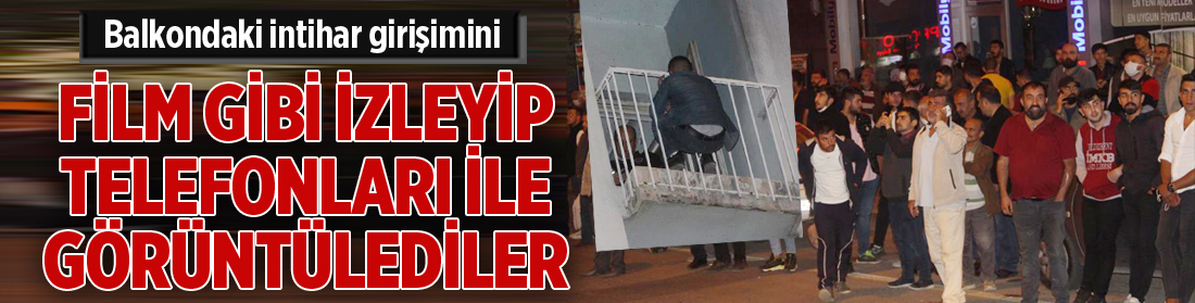 Erzurum’da balkonda intihara kalkışan alkollü şahıs, 2 saat süren çabalar sonucu ikna edilerek indirildi. Binanın önünde toplanan meraklı kalabalık ise, ellerinde telefonlarla saniye saniye olanları izleyip kaydetti.