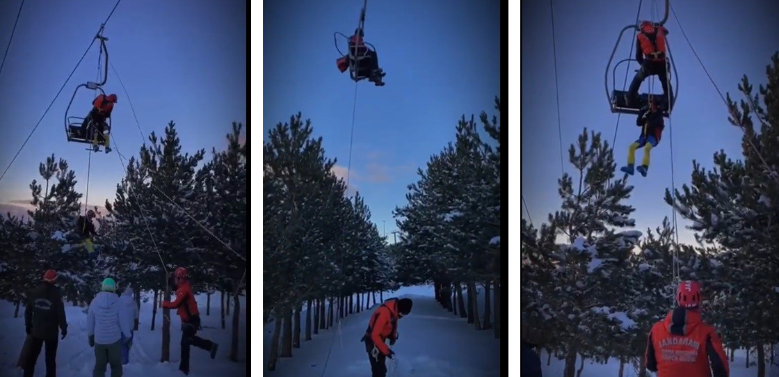 “Erzurum Palandöken’de bir otele ait kayak pistindeki telesiyejin arızalanması sonucu vatandaşlarımızın mahsur kaldığı ihbarının alınması üzerine, Jandarma Arama Kurtarma Timlerimiz bölgeye sevk edilmiş, yapılan çalışmalar sonucunda 8 telesiyejdeki 17 vatandaşımız kurtarılmıştır”