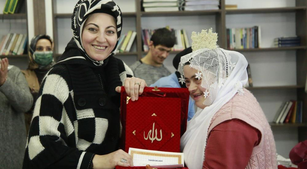 Erzurum Büyükşehir Belediyesi Kadın ve Engelli Hizmetleri Koordinasyon Merkezinde Kur’an-ı Kerim eğitimi alan Down Sendromlu öğrenci Fatma Kisha’nın, Kur-an’ı Kerim’e geçmesi sebebiyle ‘taç giyme’ töreni düzenlendi.