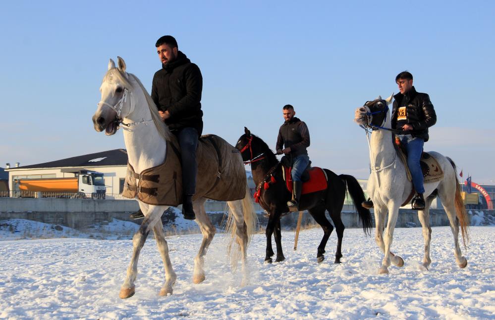 Erzurum’da at üzerinde yapılan cirit sporu asırlardır yaşatılıyor. Kıyasıya mücadelelerin verildiği yarışmalarda ter döken atlar ve sporcular yarışlar öncesi çarşaf gibi kar üzerinde antrenmanlarını sürdürüyor.