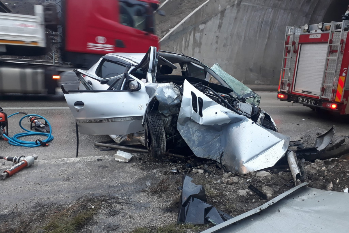 Otomobil tünel girişine çarptı; Anne ve oğlu can verdi