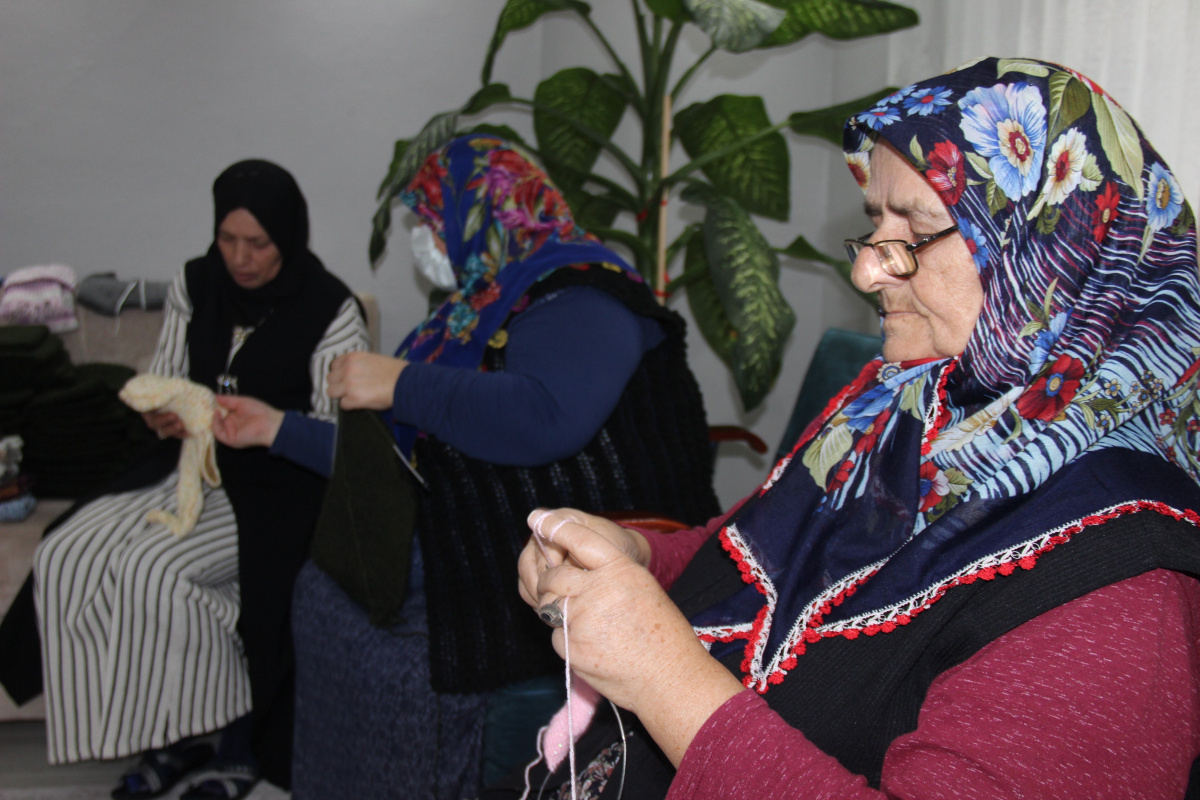 77 yaşında olmasına rağmen örgü şişlerini ellerinden bırakmayan Hayriye Aldırmaz, “Boş kaldığım zamanlar torunlarıma örgü yapardım. Bu sene ise oğlum İsmail bize ip getirerek ‘askerler üşümesin diye örgü örer misiniz?’ diye sorunca biz de kabul ettik. Çocuklar için 10 tane yelek ördüm, askerler için yaptığımız 200 tane boyunluk ise hepsi elimden geçti. Allah askerlerimize hayırlısı ile kullanmayı nasip etsin. Askerlerimizi mutlu etmek için biz de elimizden geldiği kadar çabalamaya çalışıyoruz. Onlar orada üşümezse biz de burada rahat uyuyabiliriz” şeklinde konuştu.