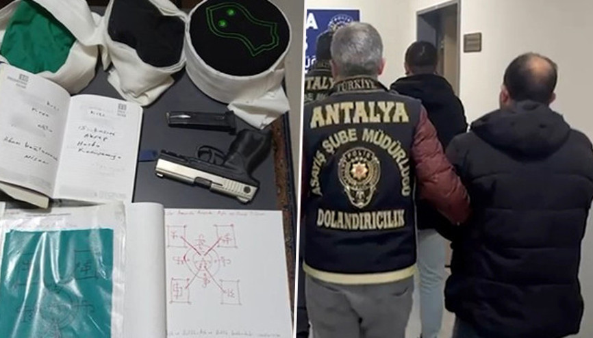 Antalya’da dini inanç ve duyguları istismar ederek 2 milyon TL’lik dolandırıcılık yapan 2 şüpheli eş zamanlı operasyonla yakalandı. Şüphelilerden O.S. serbest bırakılırken, ‘Hoca’ lakaplı V.Ü. tutuklandı.