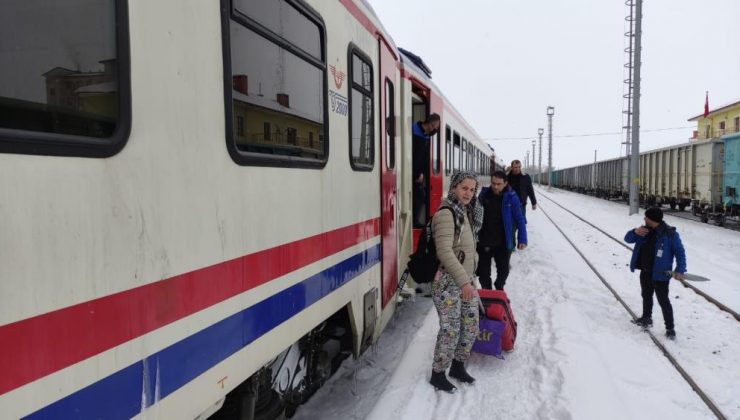 Yolculardan Recep Yılmaz, “15 saattir trenin içindeyiz. Yola çığ düşmüş. Tur otobüsleriyle Kars’a gidiyoruz” dedi.